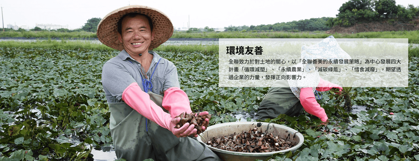 全聯致力於支持永續農業的發展,自生產、配送、上架、直至剩食回收皆以最高標準嚴格控管,將永續概念融入到循環生產的流程中。
