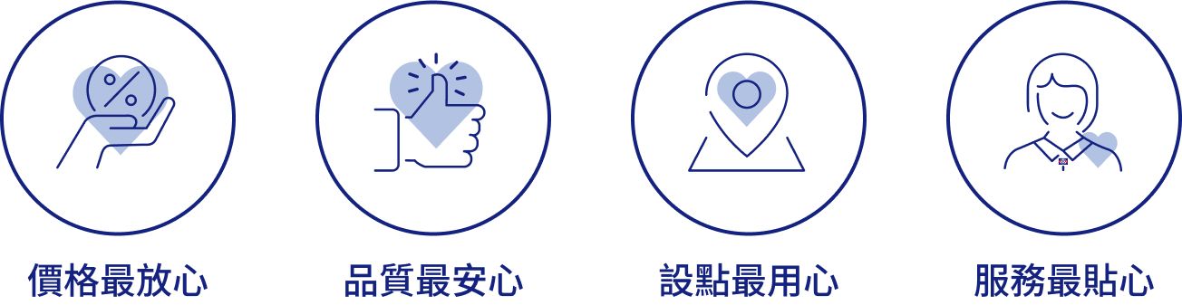 價格最放心、品質最安心、開店最用心、服務最貼心。
