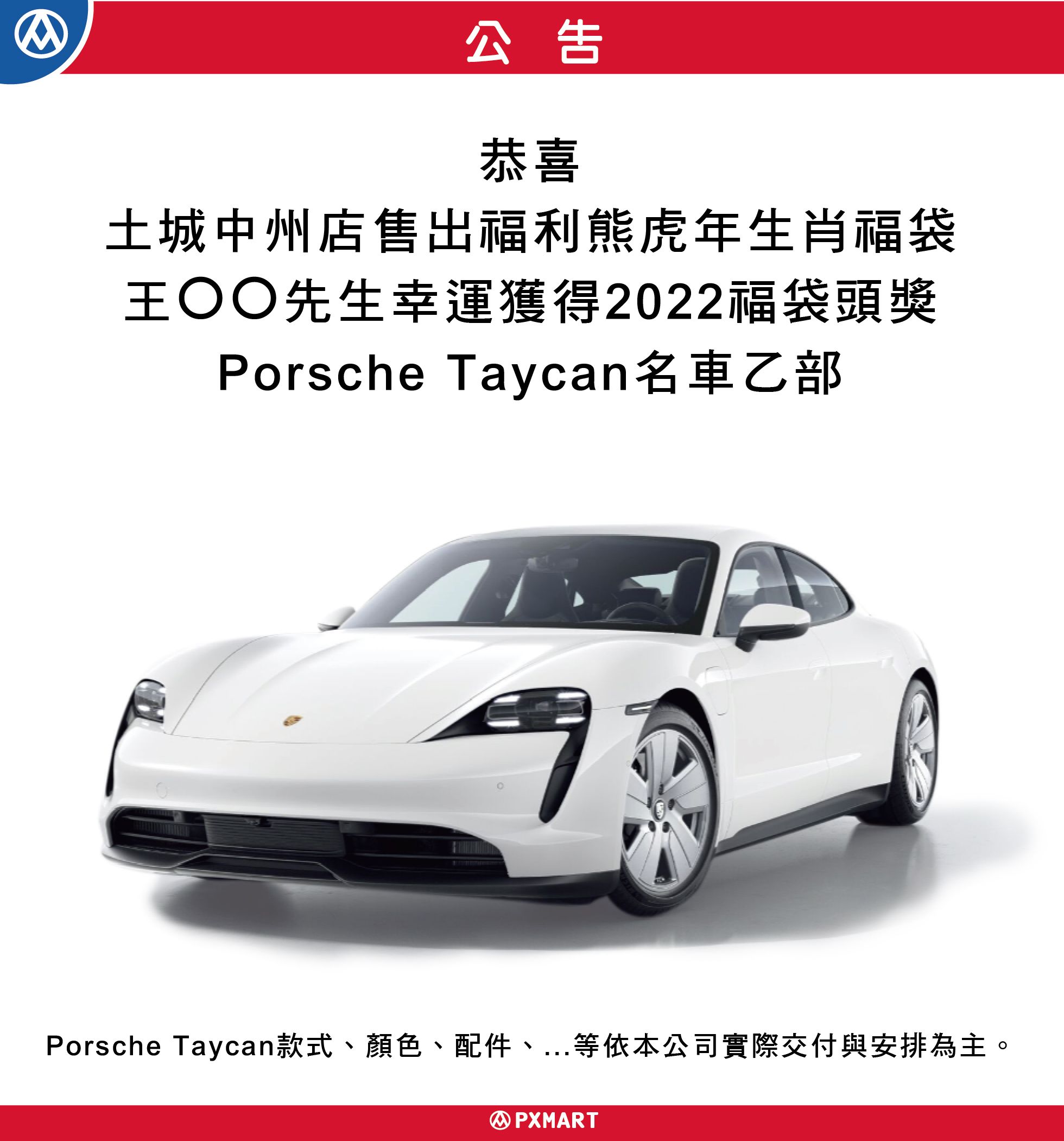 【公告】2022福袋頭獎Porsche Taycan領獎公告
