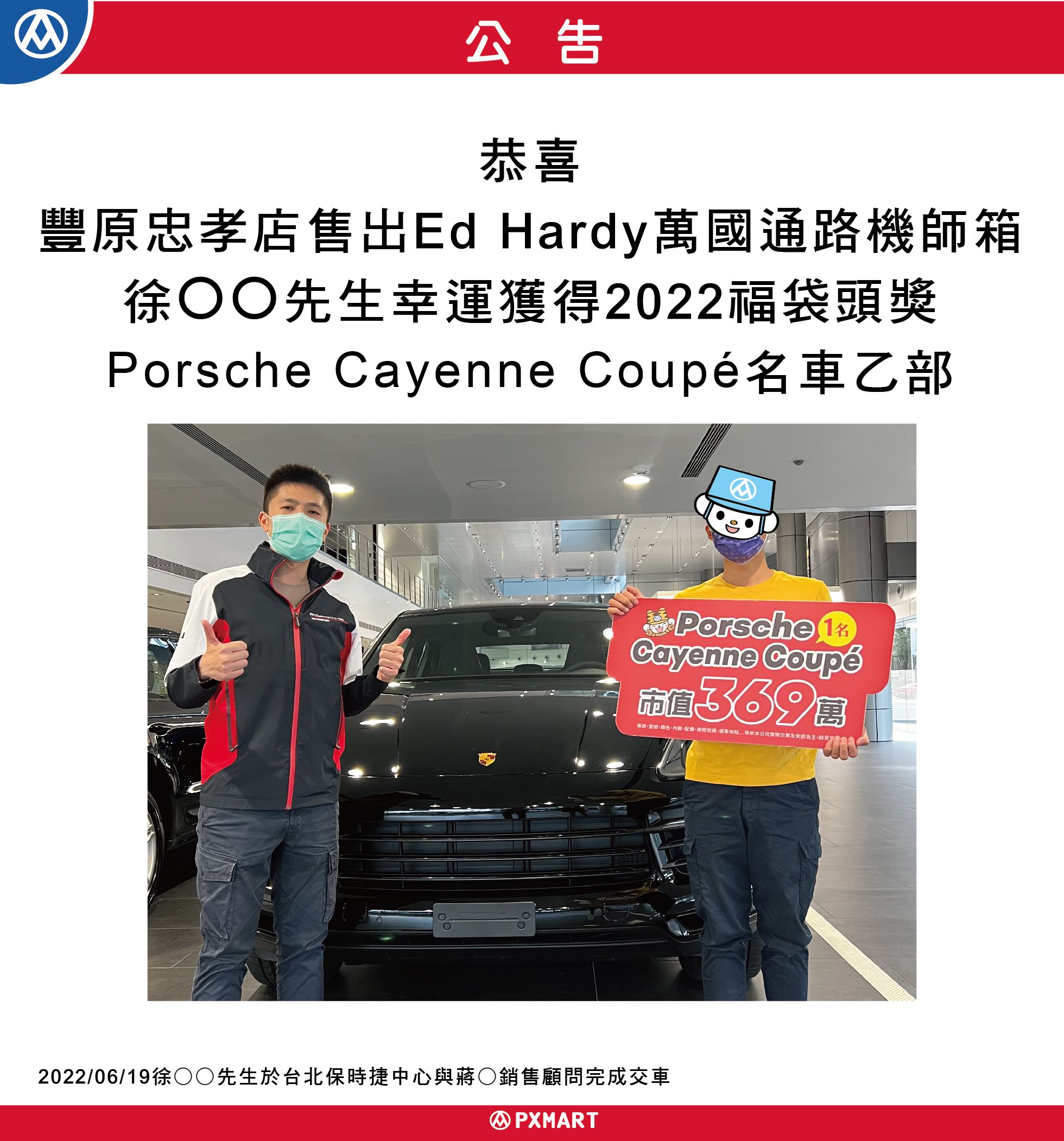 【公告】2022福袋頭獎Porsche Coupé領車公告