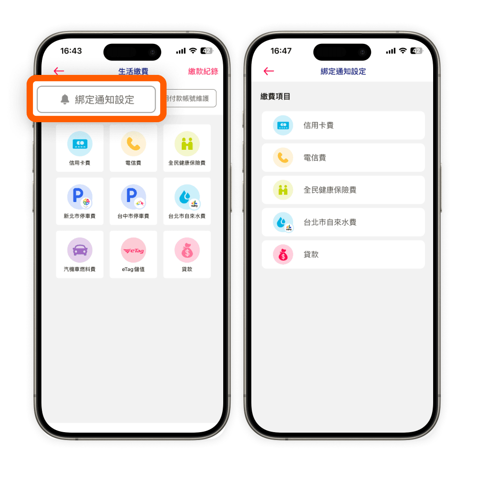 生活繳費功能-設定繳費提醒