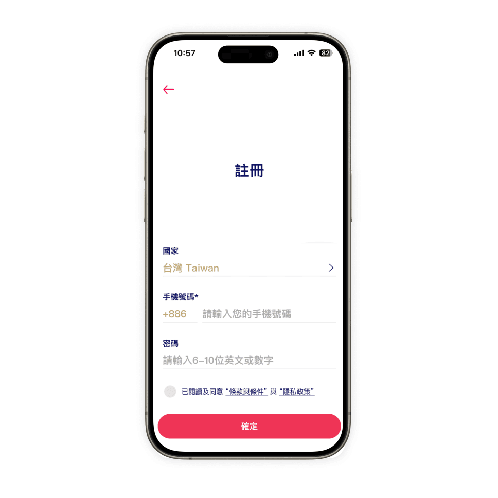 輸入手機號碼並且點選「註冊新用戶」