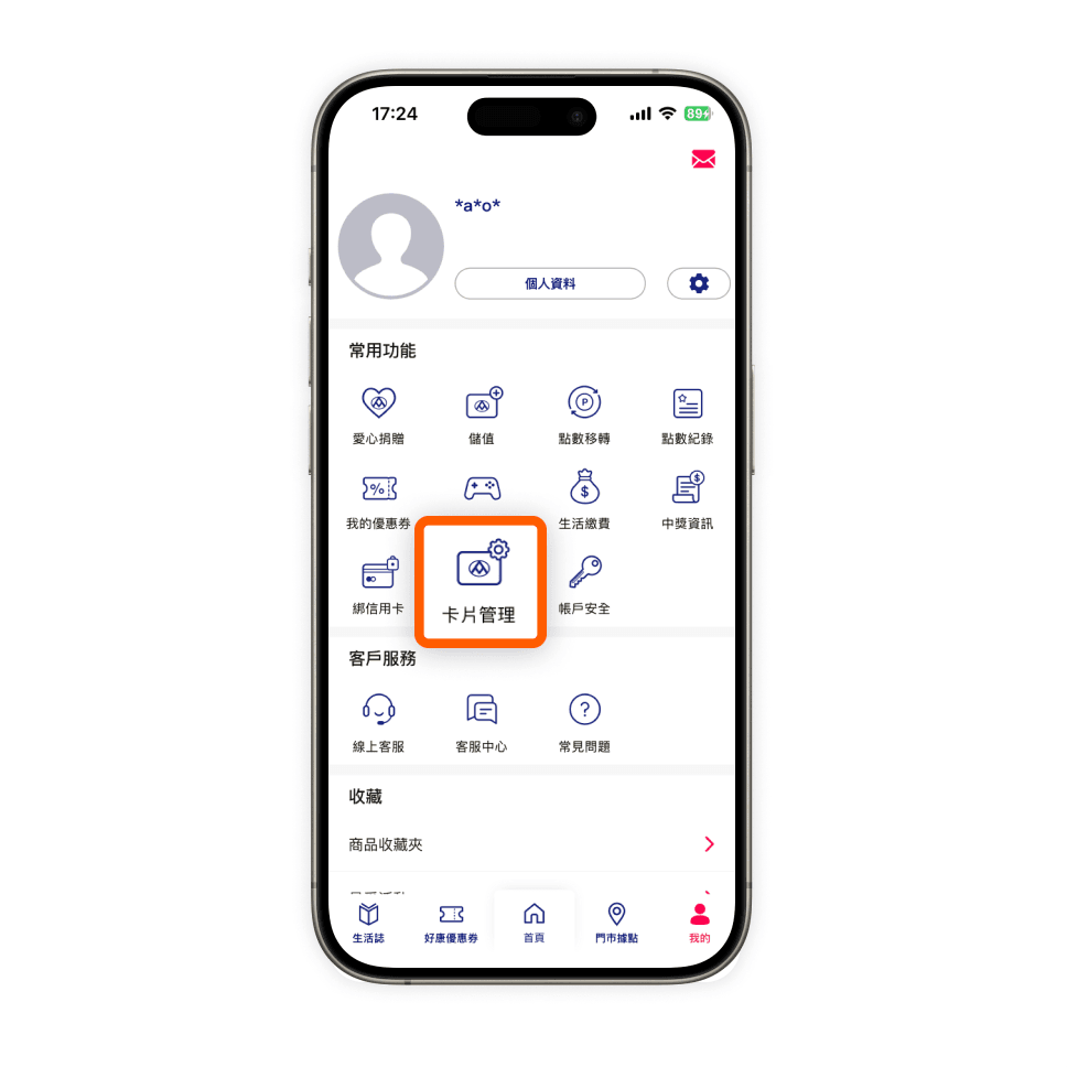 點選卡片管理