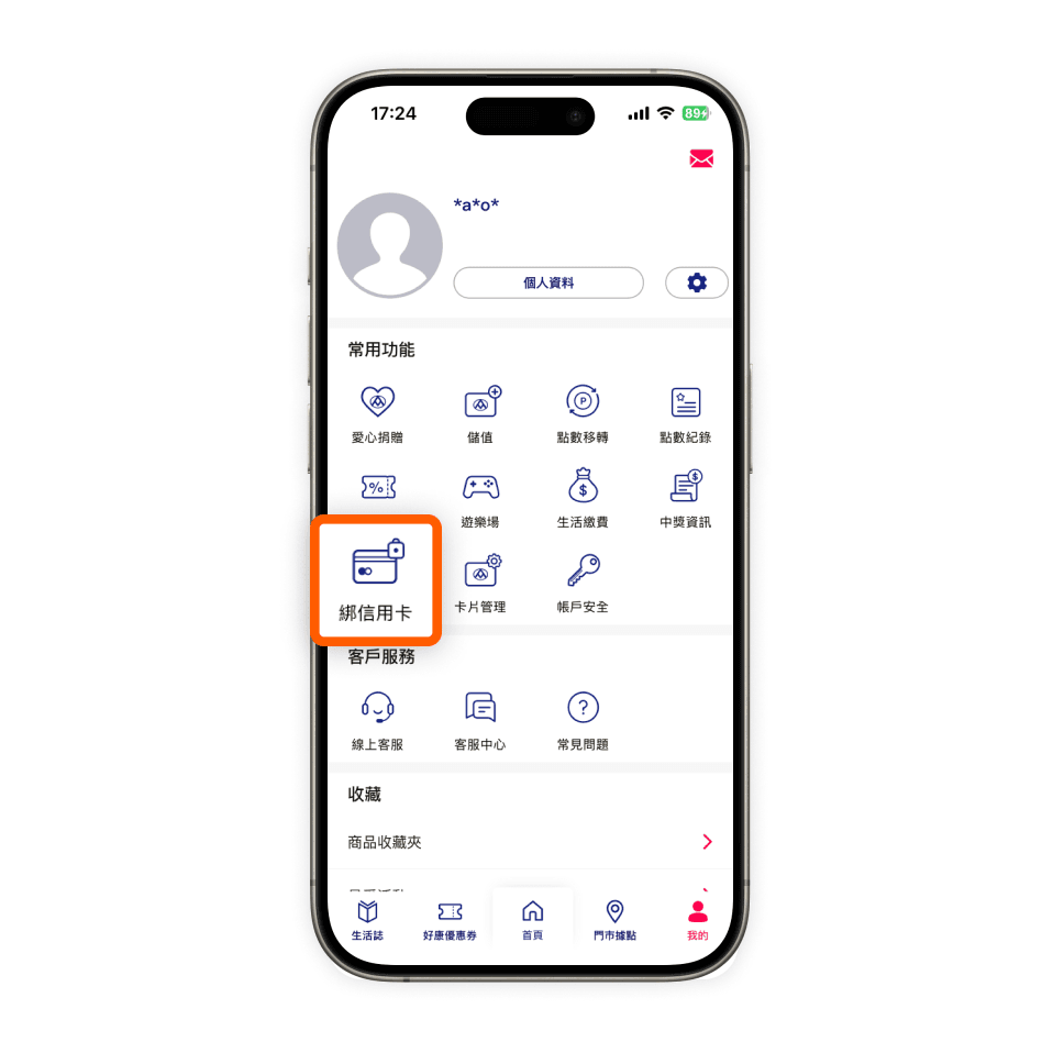 點選「綁信用卡」