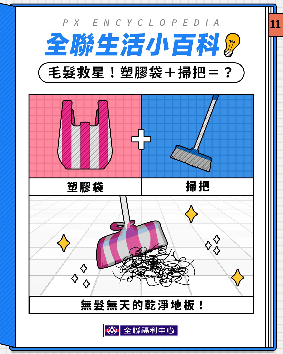 【 #全聯生活小百科:毛髮救星 ! 塑膠袋+掃把=?】