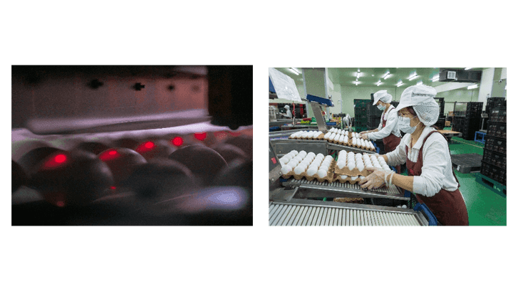 當白蛋從巢裡誕生,它的旅程才正要開始。 經過自動化洗選系統的清洗與分級後, 蛋品會送至專責的品管區。 在那裡,專業人員以柔光檢視每一顆蛋的外觀、殼厚、潔淨度與完整性, 再透過多重檢測確認品質—— 只有通過檢驗的白蛋,才能進入包裝線。 這些嚴謹的程序,不只是標準流程, 更是究巢對「安心」與「信任」的承諾。