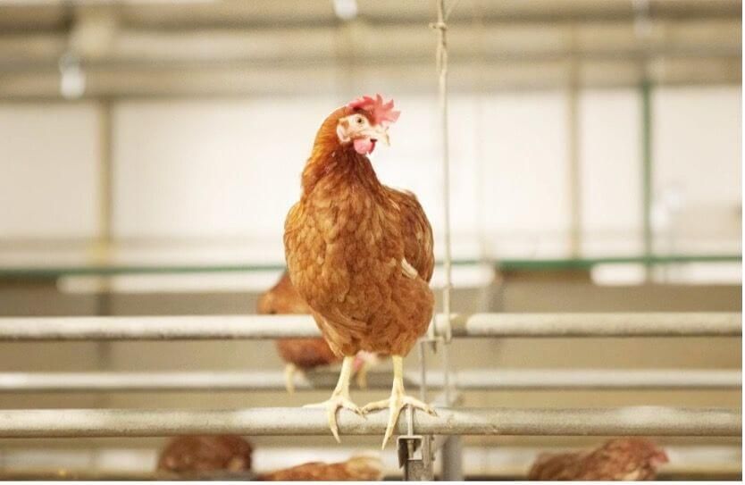 每隻雞擁有15公分以上棲架,滿足母雞喜歡抓握與棲息高處之天性,並設置安全隱密的產蛋巢箱,提供母雞安心產蛋的私密空間。