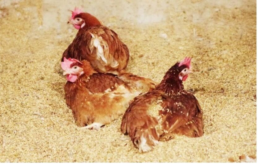 此外,提供舒適沙浴場,讓母雞隨時享受沙浴,保持健康亮羽。牠們沙浴時,於乾燥墊料中刨坑,把自己埋進去,不斷翻動墊料,讓細沙落入羽毛與皮膚間,再猛然抖動,把髒污甩掉,維持羽毛潔淨及調節體溫。